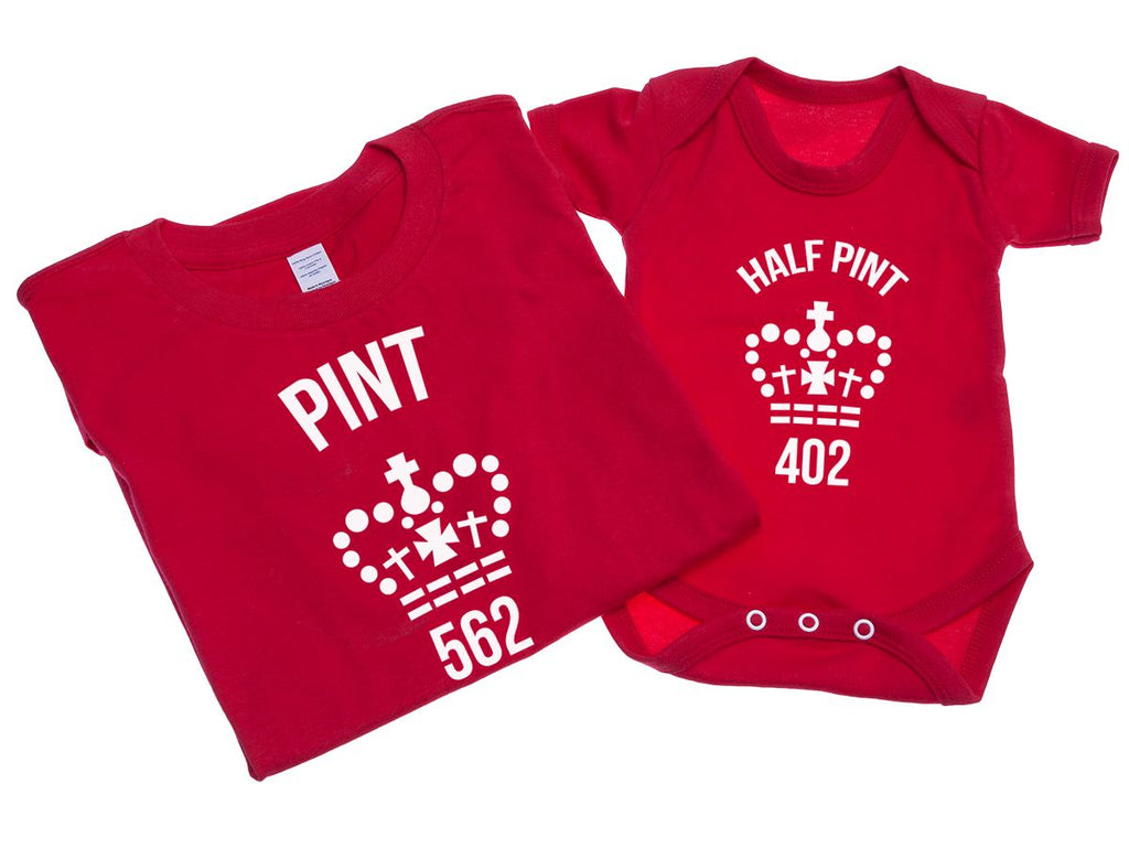Pint And Half Pint - Mens T Shirt With Short Sleeve Bodysuit Matching Gift Set